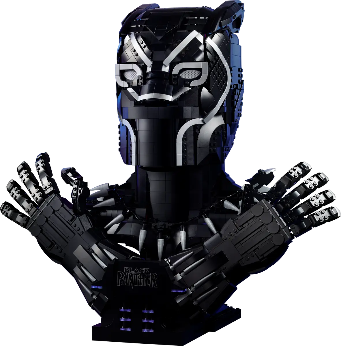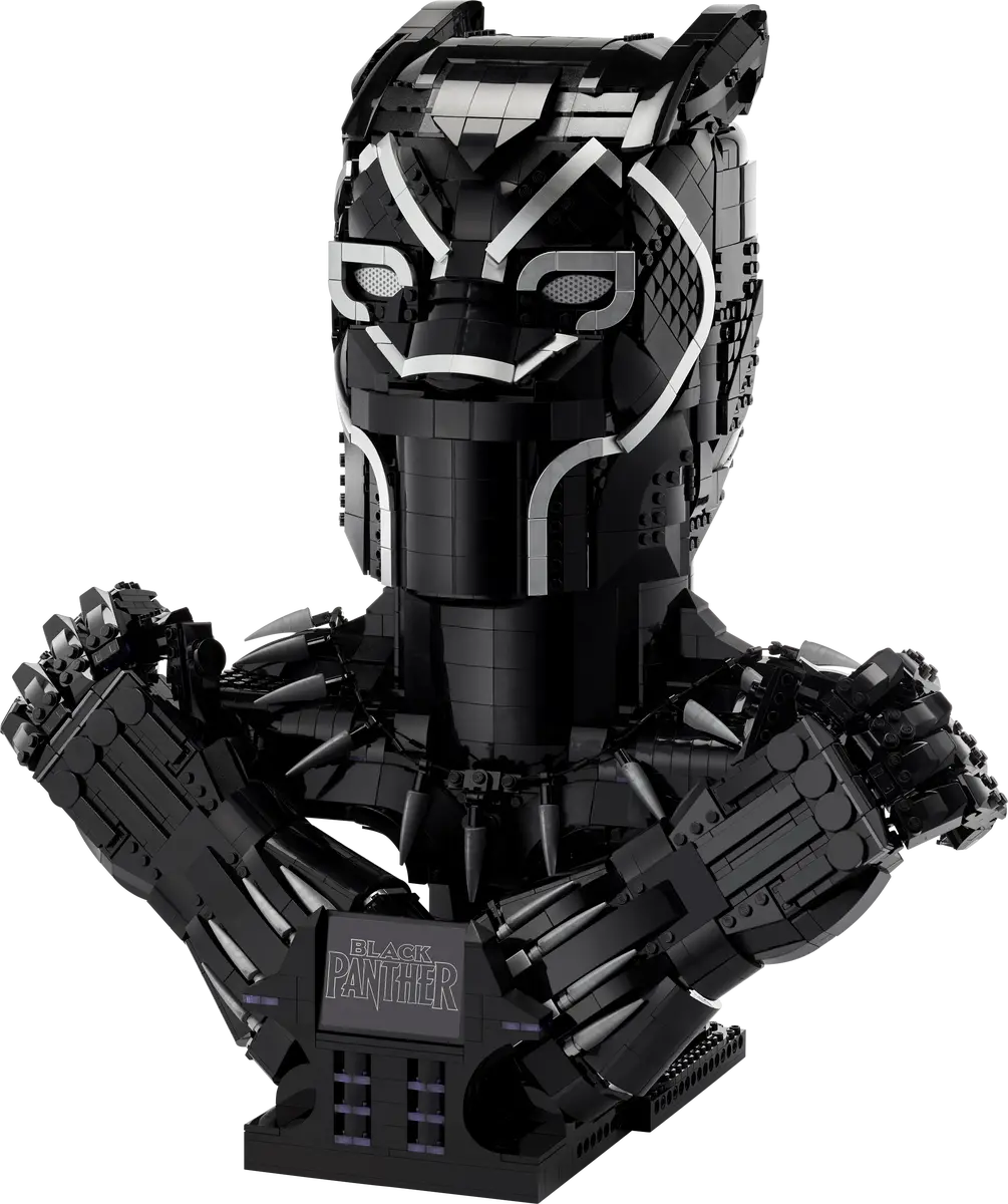 Modello costruibile del re T’Challa per costruttori esperti Questa riproduzione dettagliata è caratterizzata da testa, petto e mani di Black Panther quasi a grandezza naturale, in posa nel leggendario saluto “Wakanda Forever”. Entrambe le mani presentano dita articolate e si staccano dal modello principale per creare pose diverse. Una solida base con targa con logo completa questo tributo a una figura leggendaria. Con questo modello di 2.961 pezzi impegnativo e gratificante, il piacere e la soddisfazione dureranno ben oltre il completamento della costruzione.