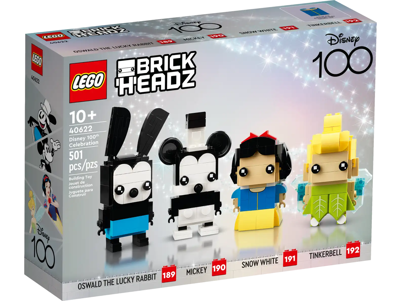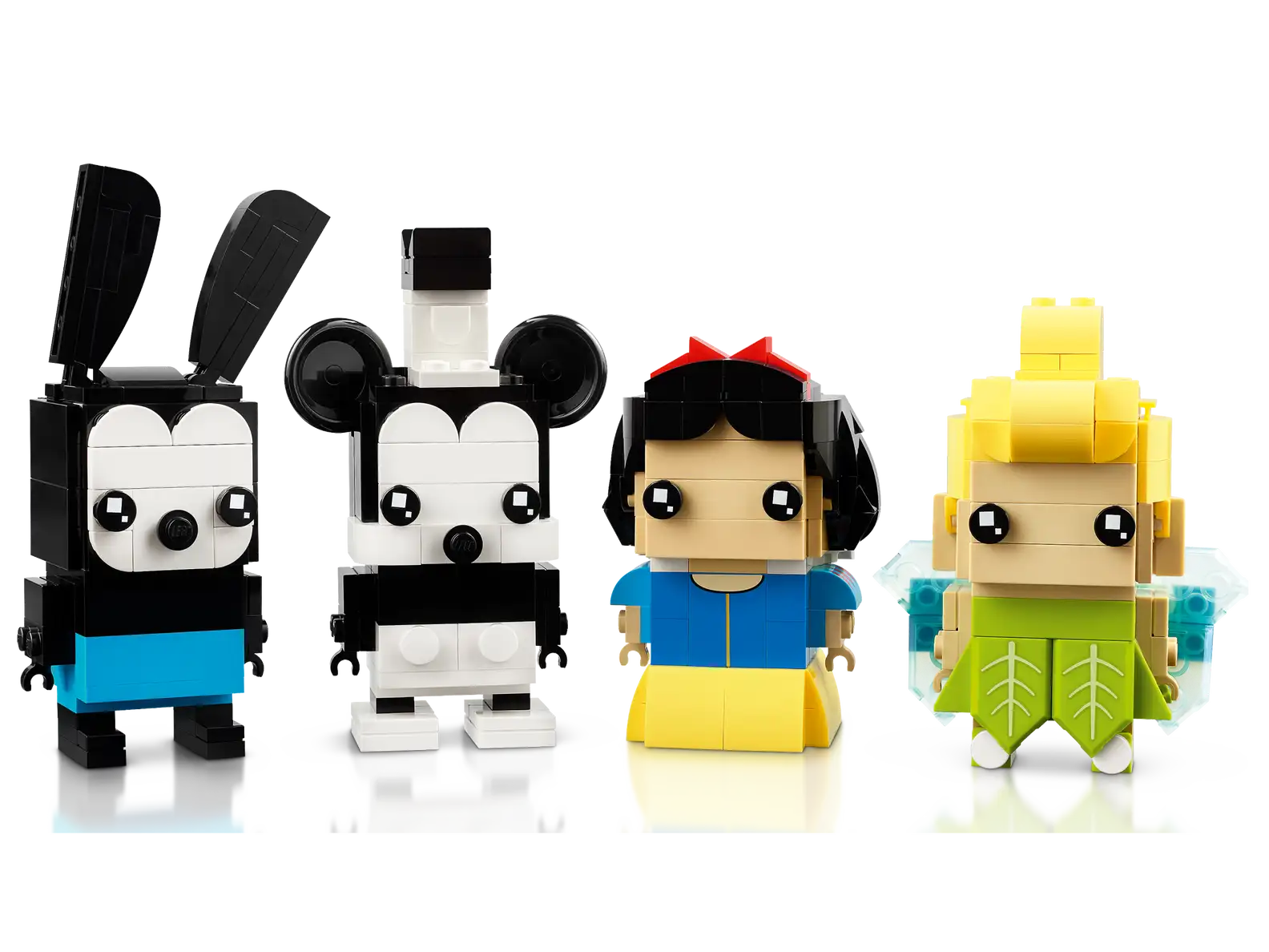 • Personaggi inconfondibili: i personaggi costruibili BrickHeadz™ LEGO® di Oswald il coniglio fortunato, Topolino, Biancaneve e Trilli sono pronti per essere esposti con il set Celebrazione dei 100 anni di Disney (40622)