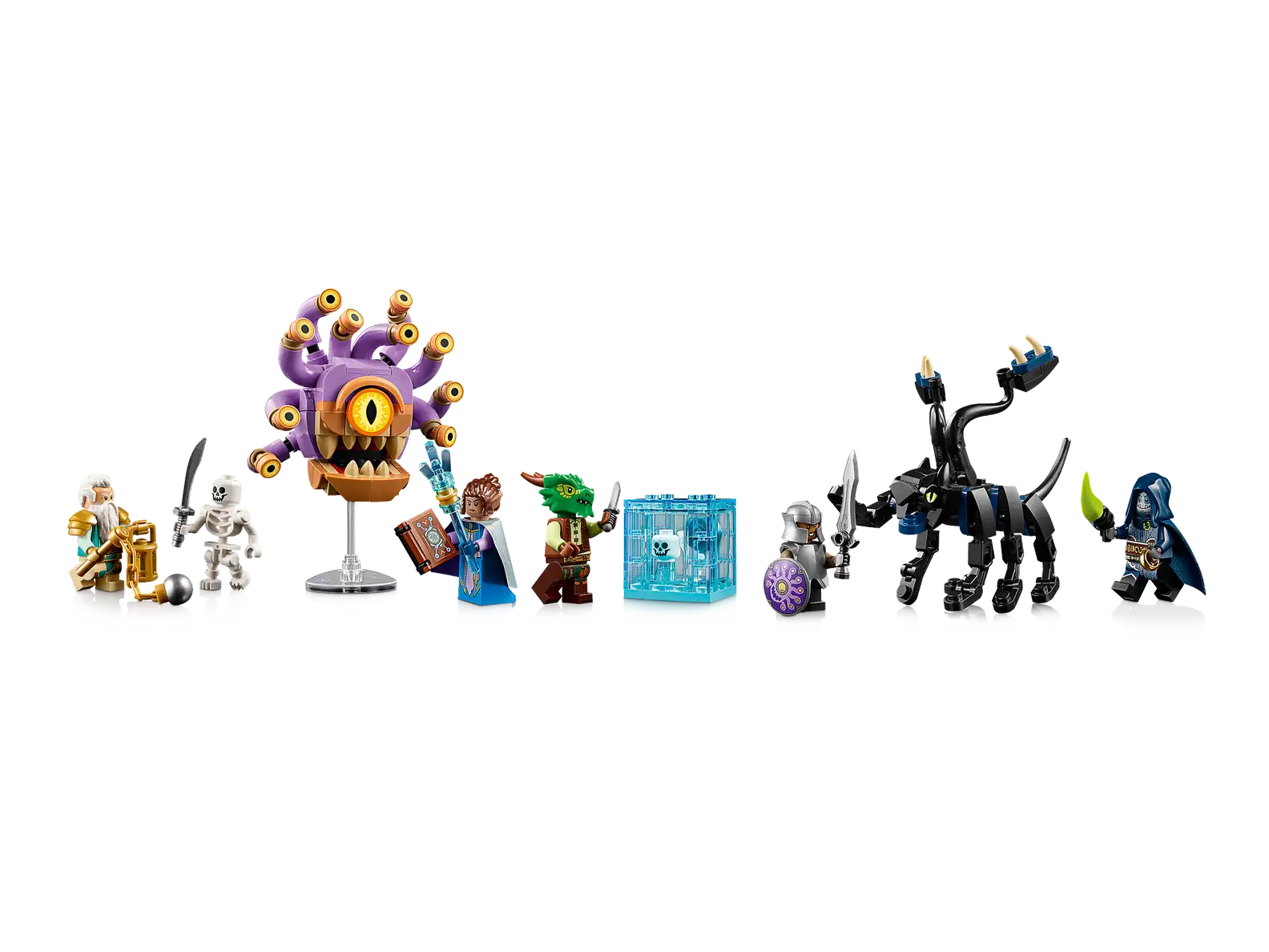 • Creature mitiche: include un mago elfico, un chierico nano, uno gnomo guerriero, un orco ladro e le minifigure LEGO® del dragonide Alax Jadescales, oltre a mostri come un orsogufo e un occhio tiranno